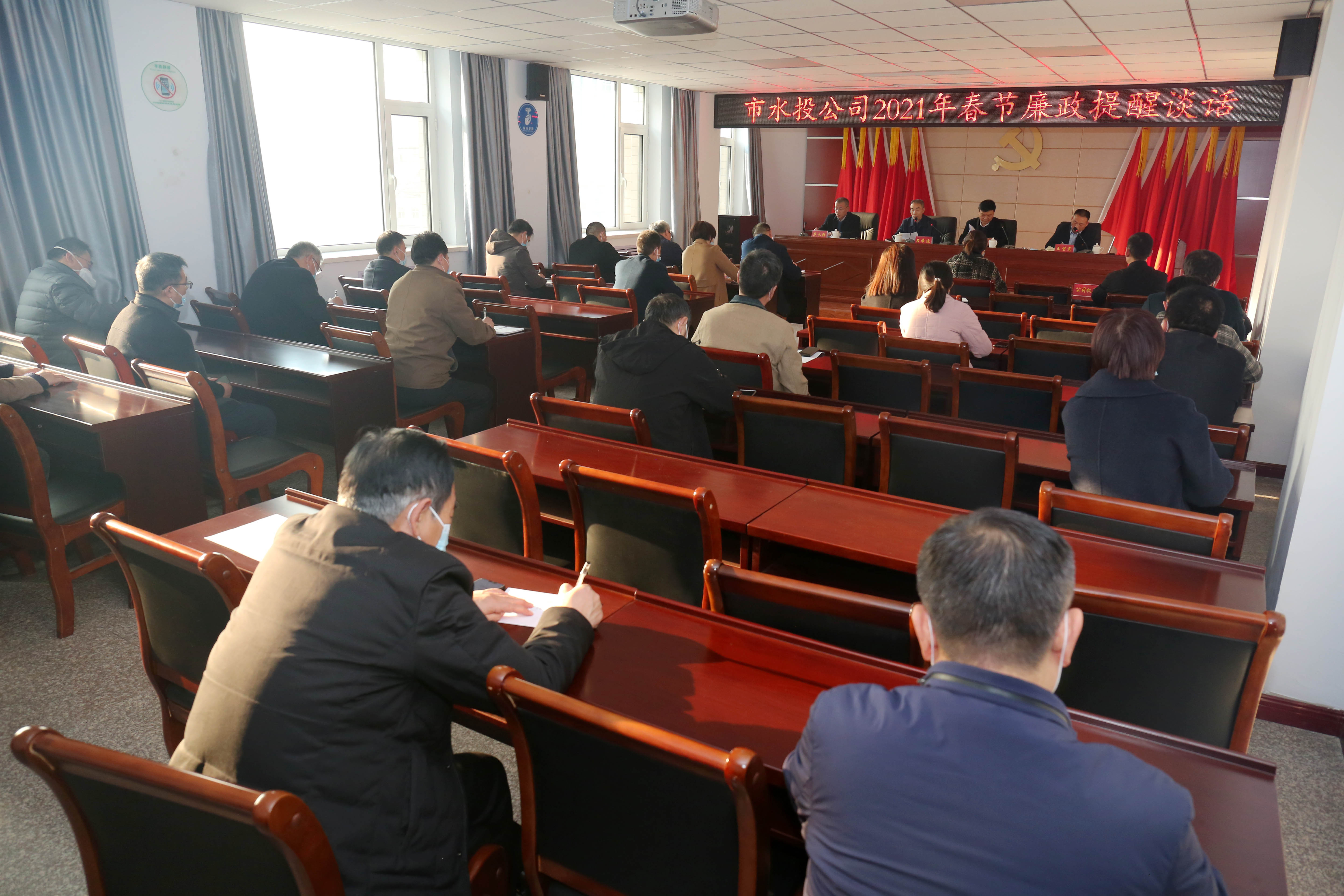 2021年新春佳節(jié)將至,為進一步落實全面從嚴治黨要求,持之以恒貫徹落實中央八項規(guī)定精神,嚴防“四風”問題在春節(jié)期間反彈,確保全體干部職工度過一個歡樂祥和、文明節(jié)儉、風清氣正的節(jié)日,2月9日下午,我公司召開2021年春節(jié)前廉政提醒談話會,持續(xù)敲響紀律警鐘。公司領(lǐng)導班子成員、機關(guān)中層干部、各下屬單位領(lǐng)導班子成員參加會議。