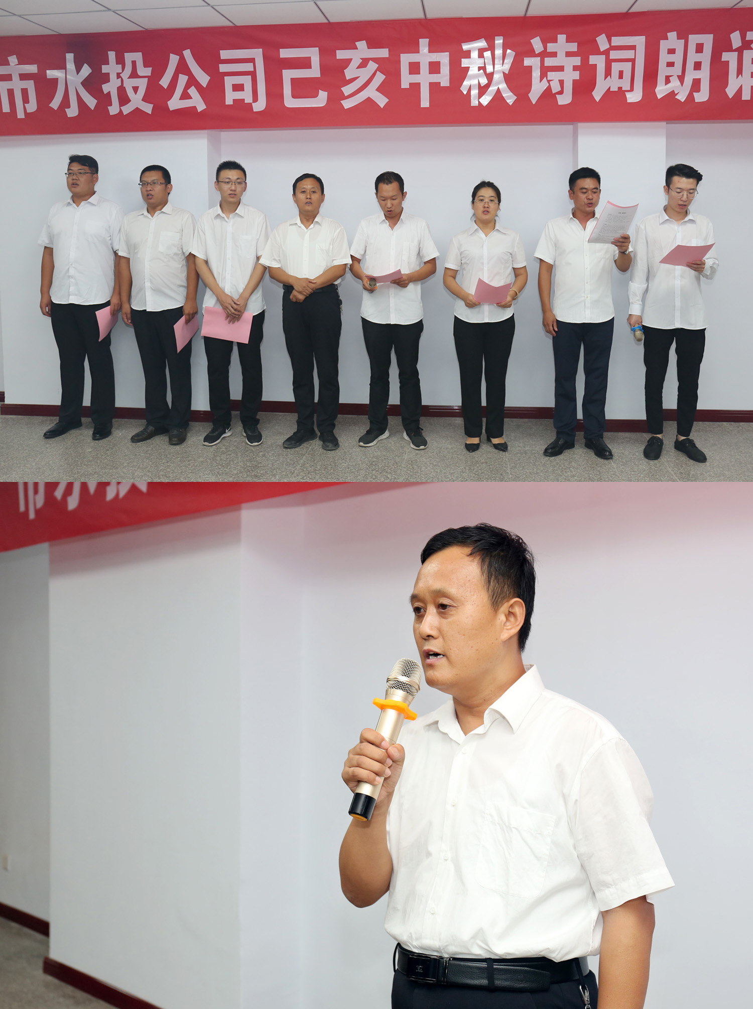 朗誦會(huì)開始前,公司黨委書記、董事長(zhǎng)兼總經(jīng)理崔作銘致辭,向為水投建設(shè)發(fā)展辛勤耕耘默默奉獻(xiàn)的全體員工致以誠(chéng)摯的問候和衷心的感謝,同時(shí)預(yù)祝各位員工中秋佳節(jié)快樂家庭幸福、身體健康。他希望全體員工“守初心、擔(dān)使命,找差距、抓落實(shí)”,以“長(zhǎng)風(fēng)破浪會(huì)有時(shí),直掛云帆濟(jì)滄海”的豪情,以“千淘萬(wàn)漉雖辛苦,吹盡狂沙始到金”的毅力,以抓鐵留痕,踏石留印的執(zhí)行精神,再寫傳奇,再譜新篇!