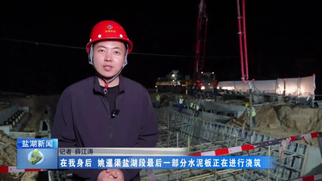 現(xiàn)在是4月28日晚上11時30分,在我身后,姚暹渠鹽湖段最后一部分水泥板正在進行澆筑。澆筑完成后,全長24.9公里的姚暹渠鹽湖段主體渠道將實現(xiàn)合龍,形成完整的過水通道,標志著工程迎來關鍵的階段性勝利。
